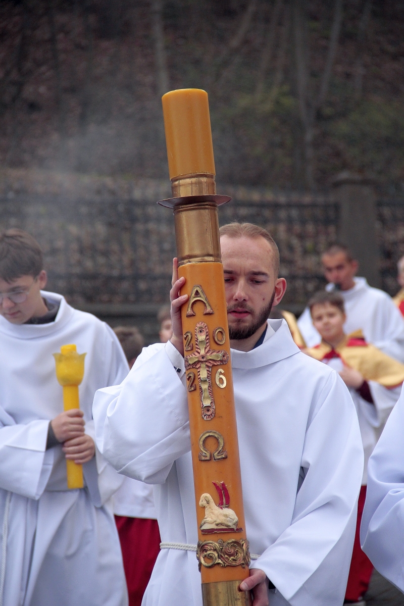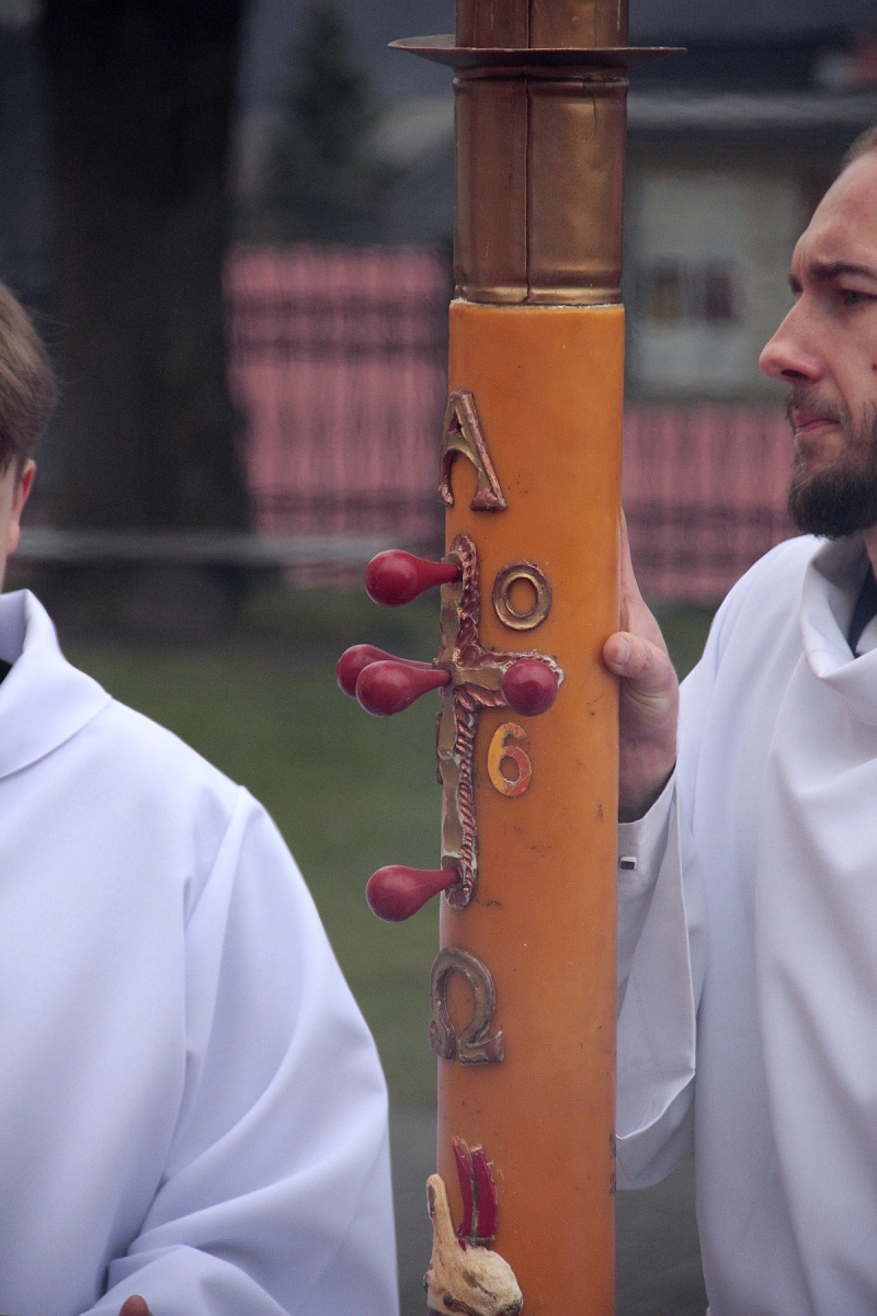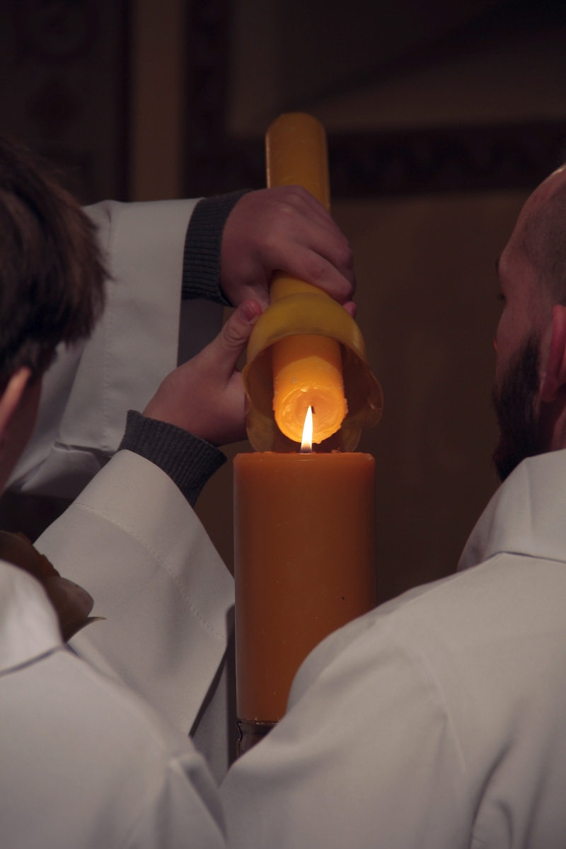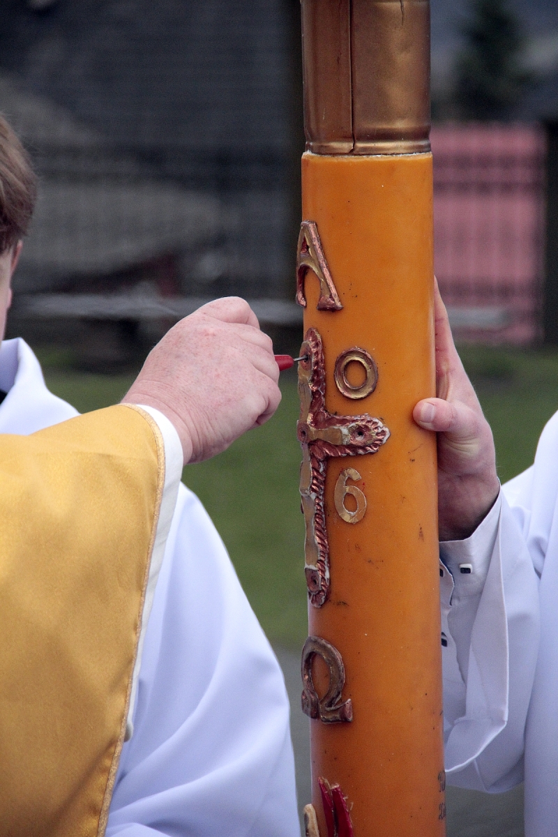 Liturgia Słowa: czytania ze Starego i Nowego Testamentu, ukazujących historię zbawienia, zakończonych uroczystym Alleluja i Ewangelią o Zmartwychwstaniu.