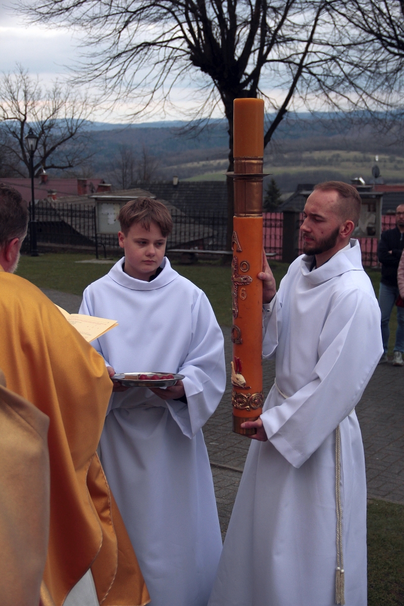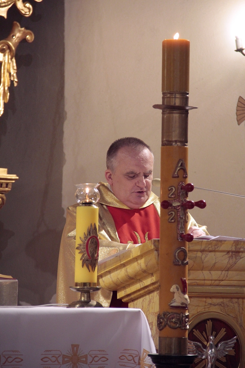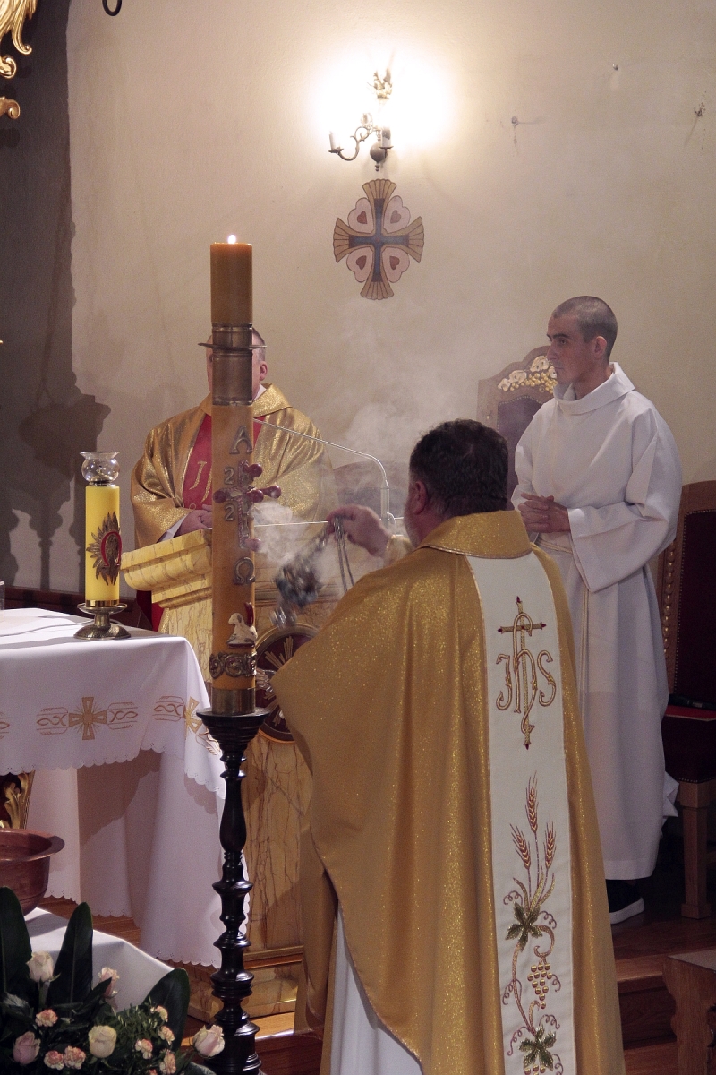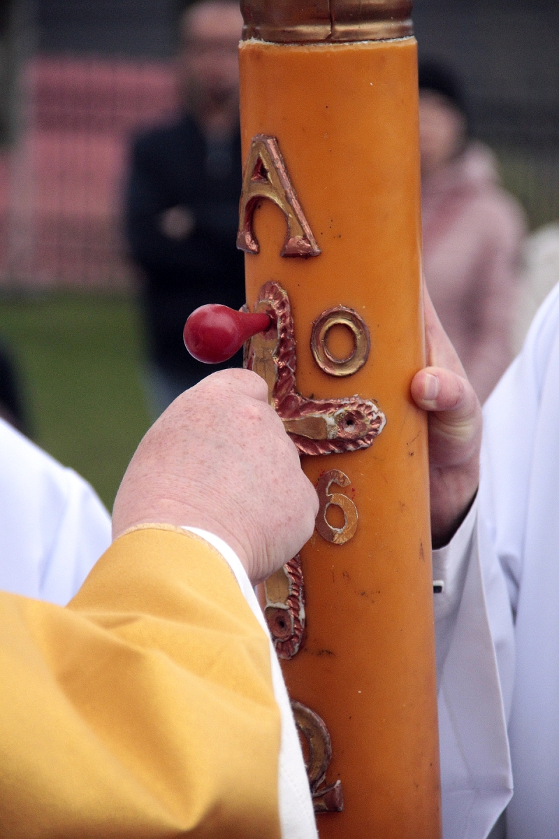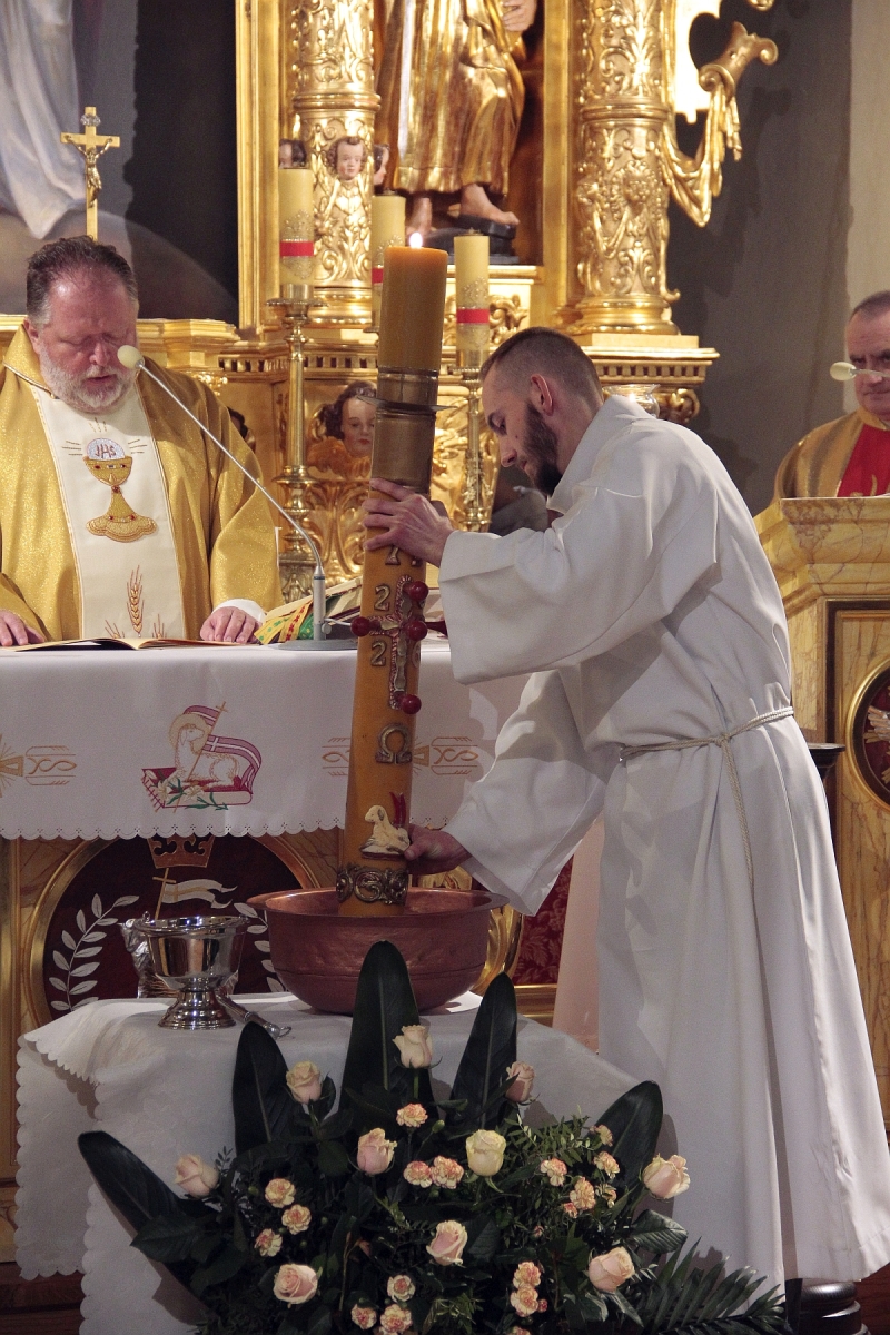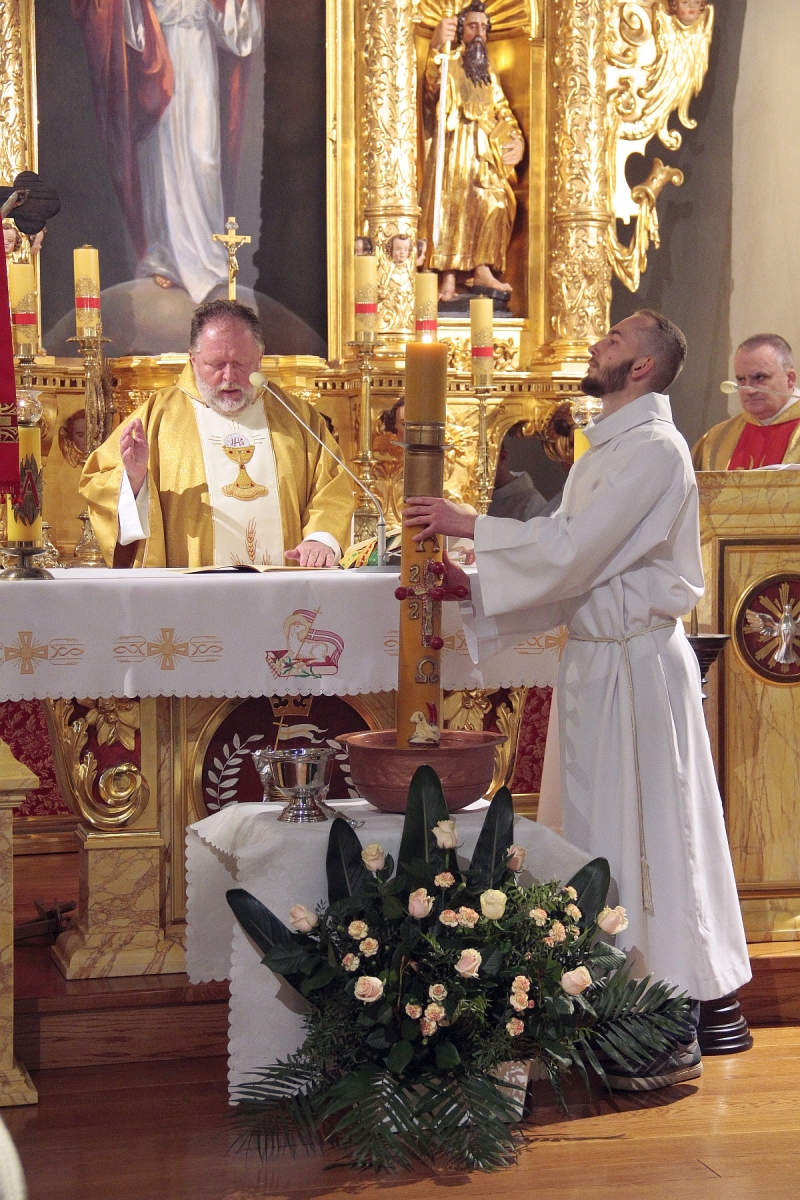 Liturgia Chrzcielna: Poświęcenie wody chrzcielnej, odspiewana została Litania do Wszystkich Świętych oraz odnowienie przyrzeczenua chrzcielne przez wiernych.