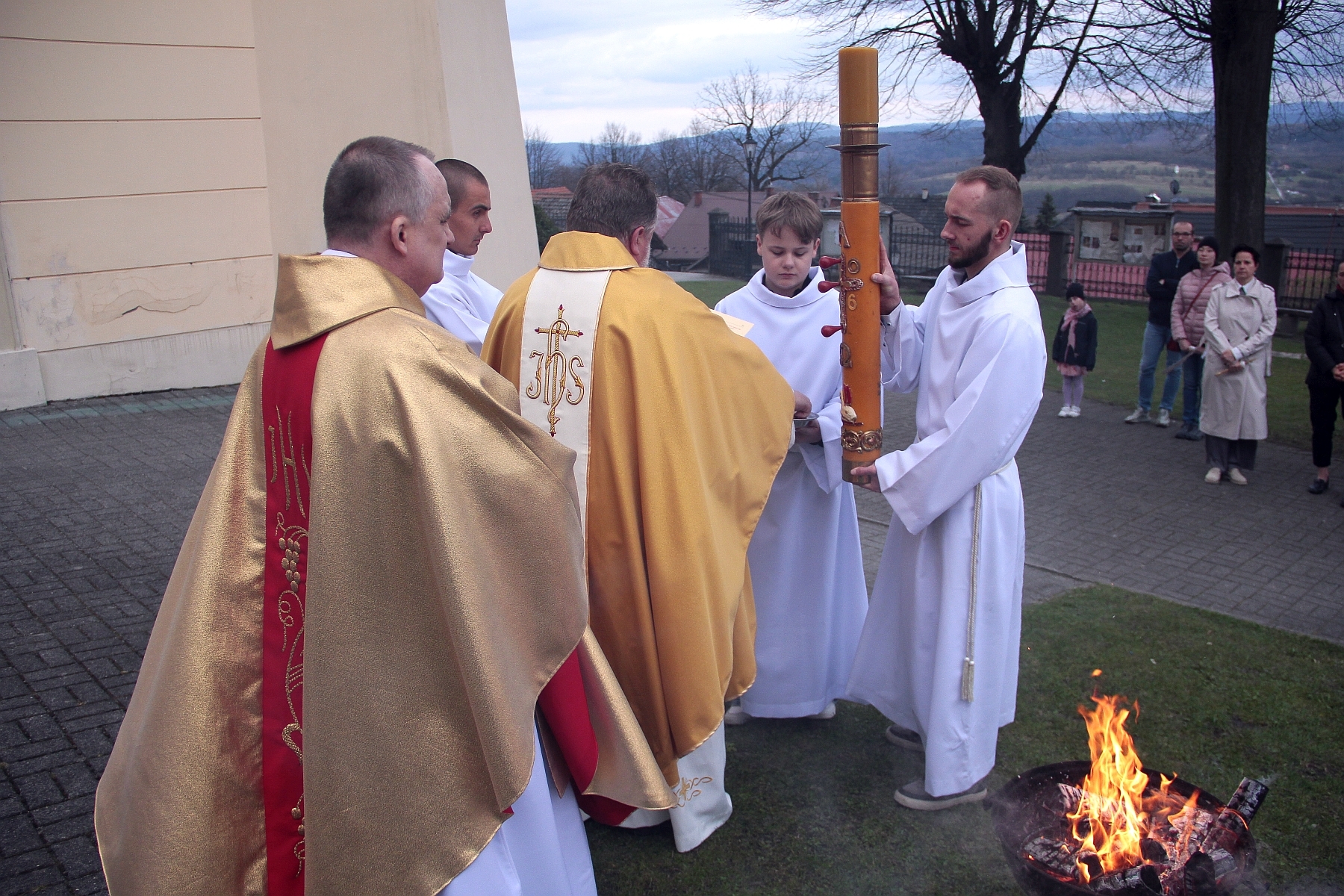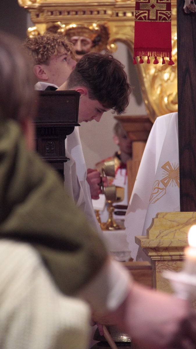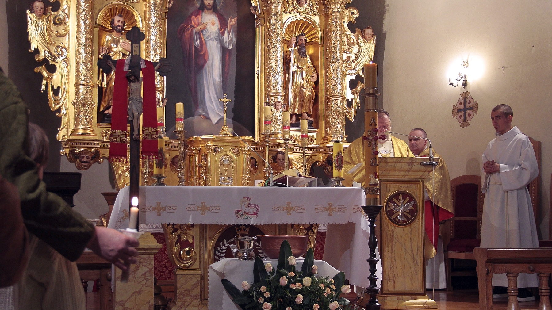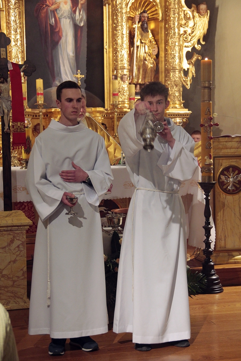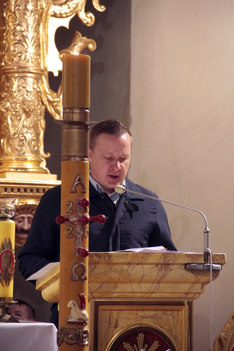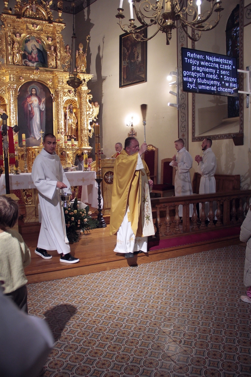 Liturgia Chrzcielna: Poświęcenie wody chrzcielnej, odspiewana została Litania do Wszystkich Świętych oraz odnowienie przyrzeczenua chrzcielne przez wiernych.
