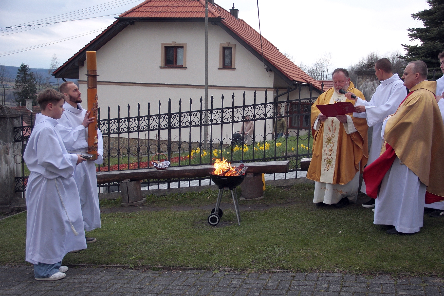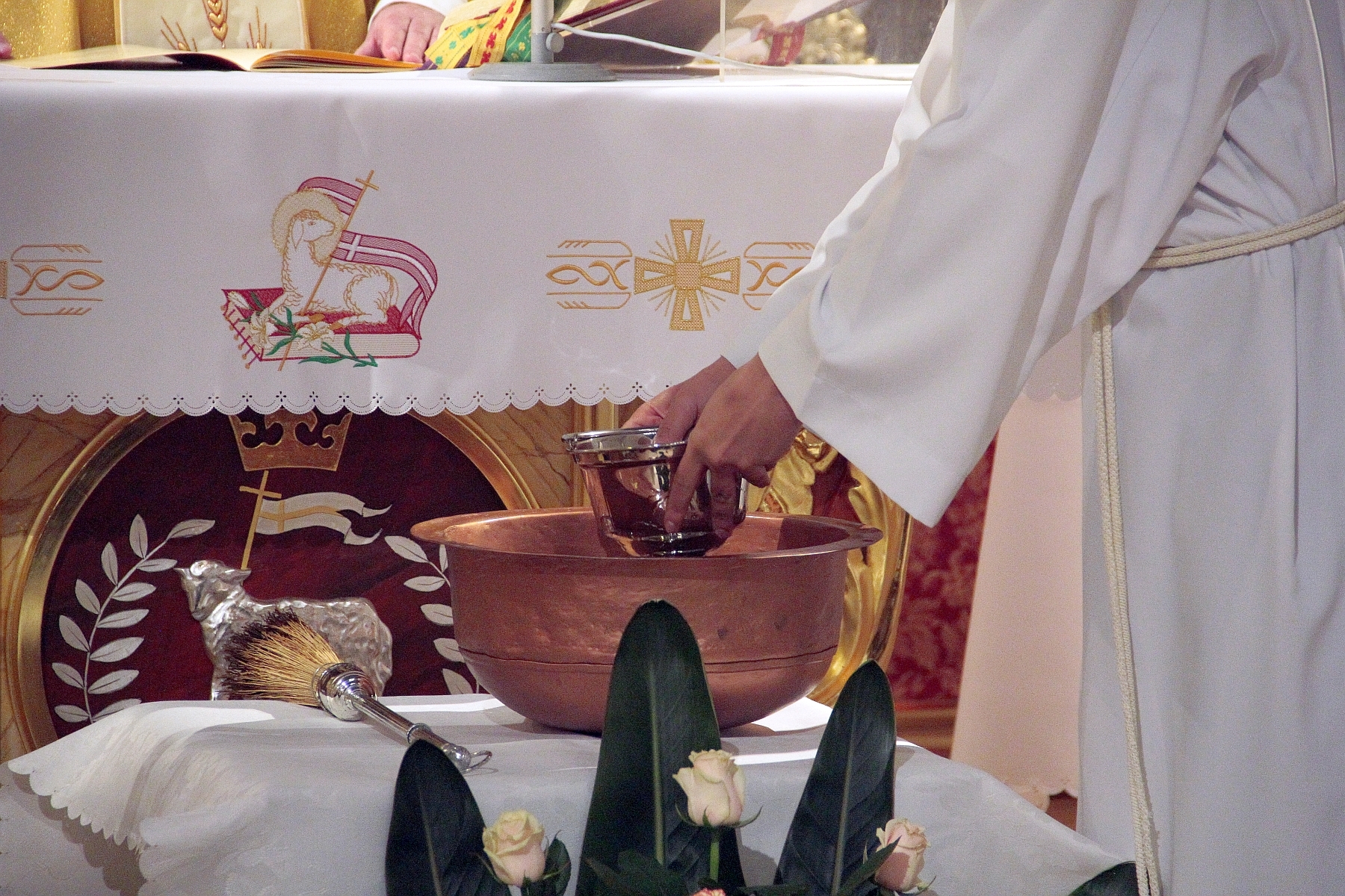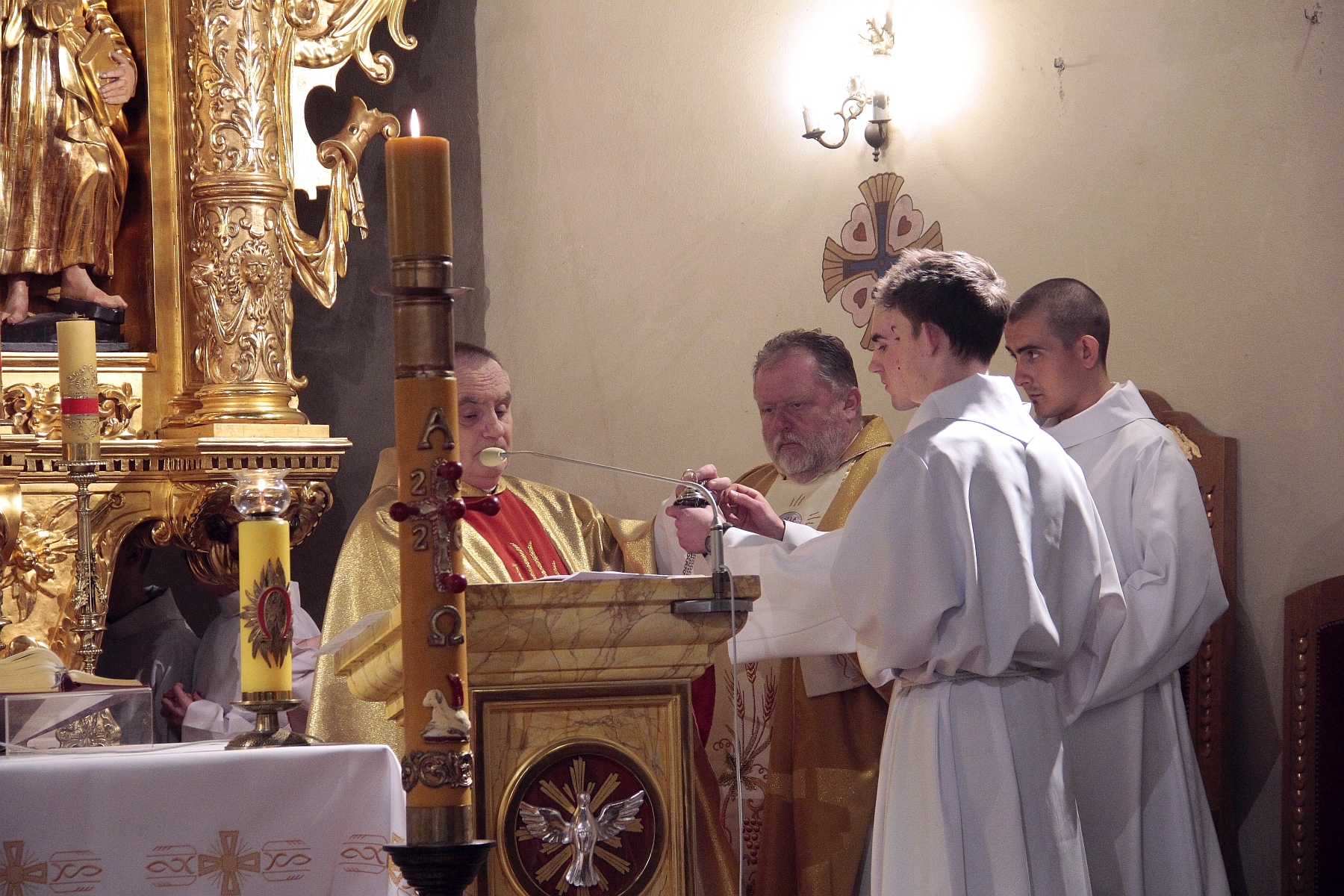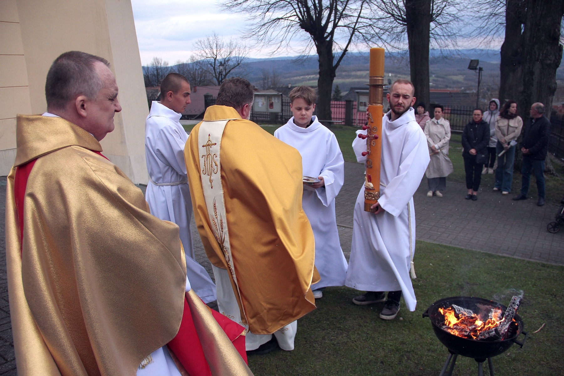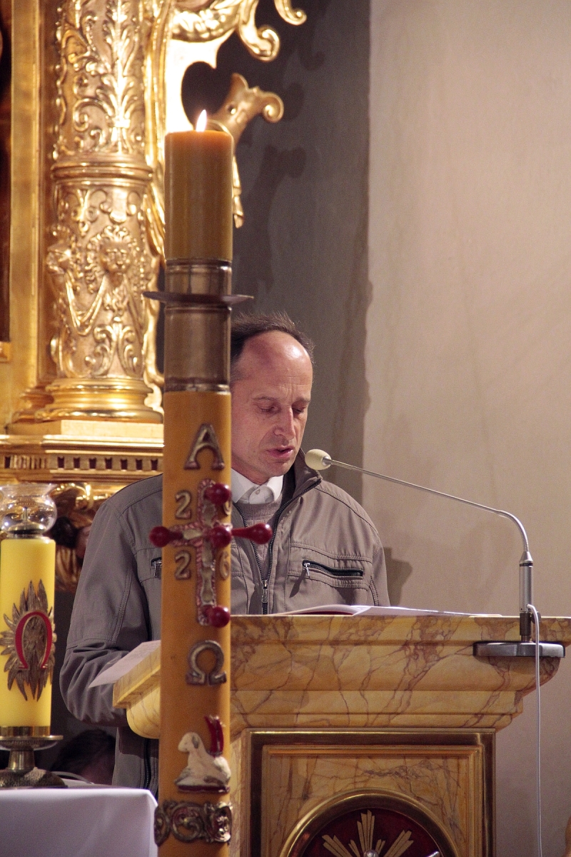 Liturgia Chrzcielna: Poświęcenie wody chrzcielnej, odspiewana została Litania do Wszystkich Świętych oraz odnowienie przyrzeczenua chrzcielne przez wiernych.
