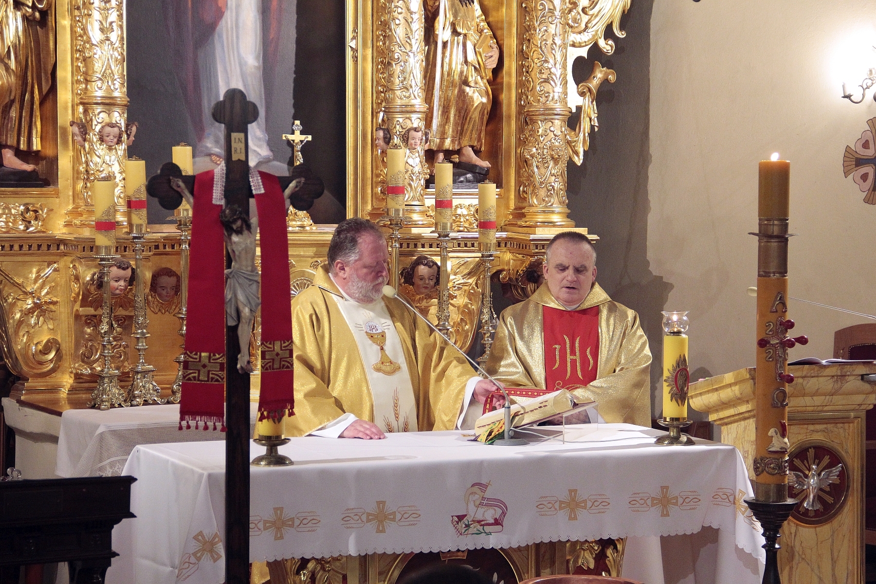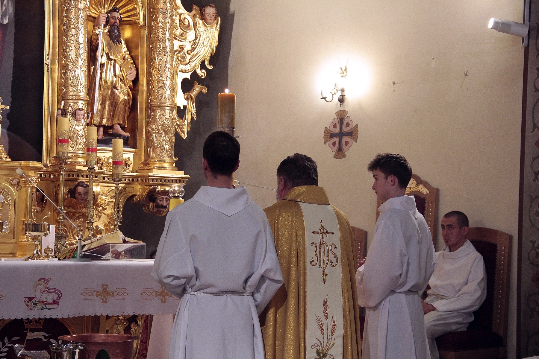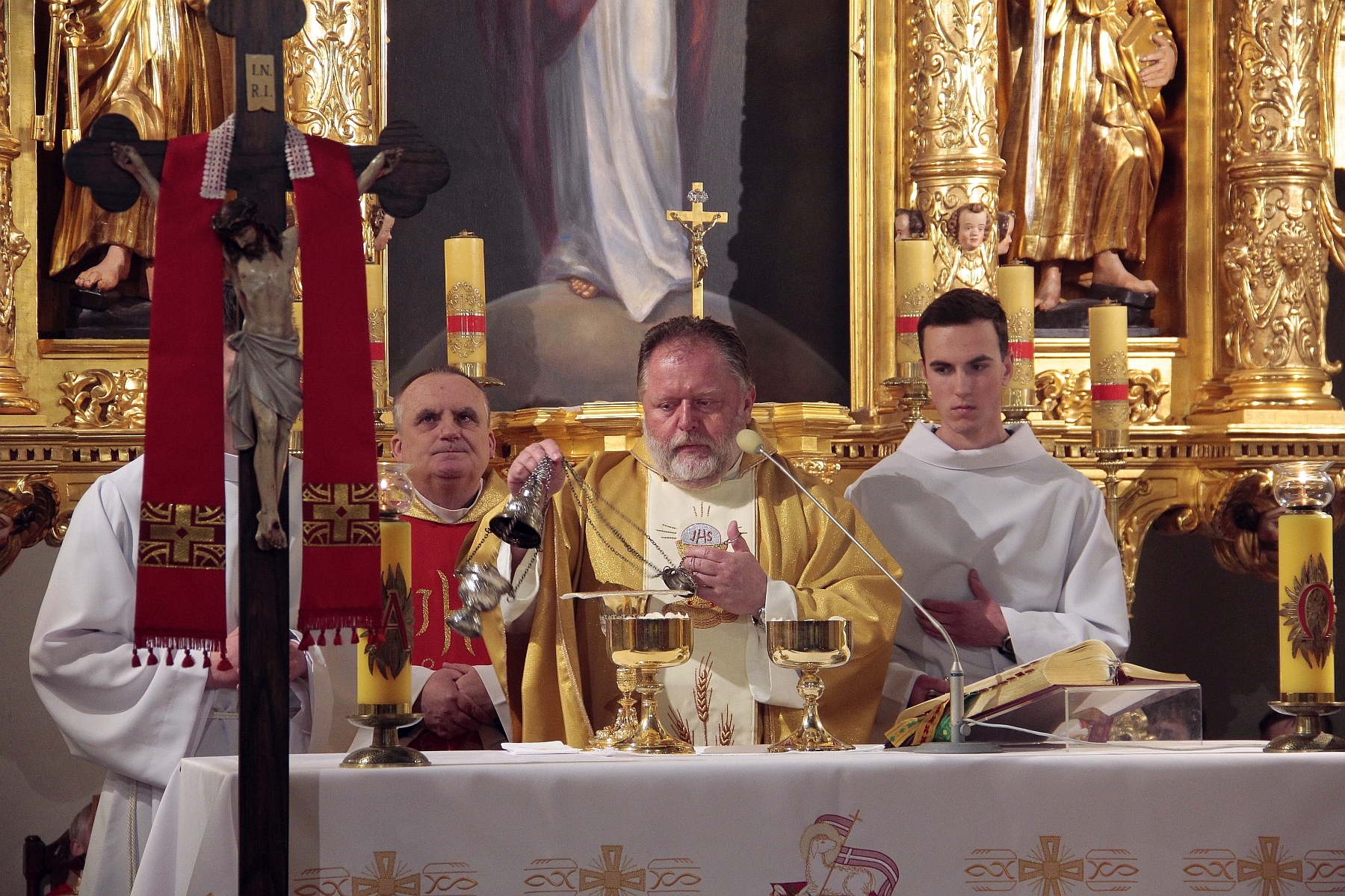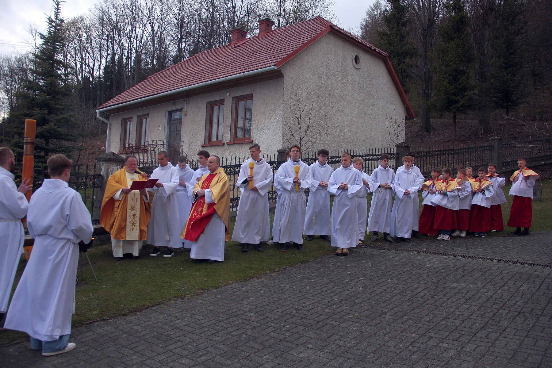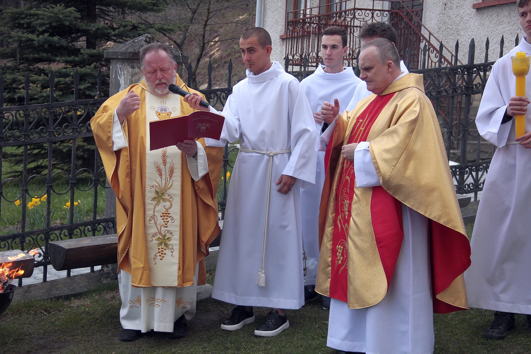 Liturgia Chrzcielna: Poświęcenie wody chrzcielnej, odspiewana została Litania do Wszystkich Świętych oraz odnowienie przyrzeczenua chrzcielne przez wiernych.